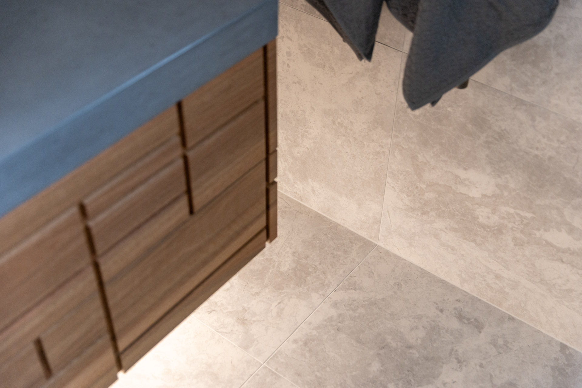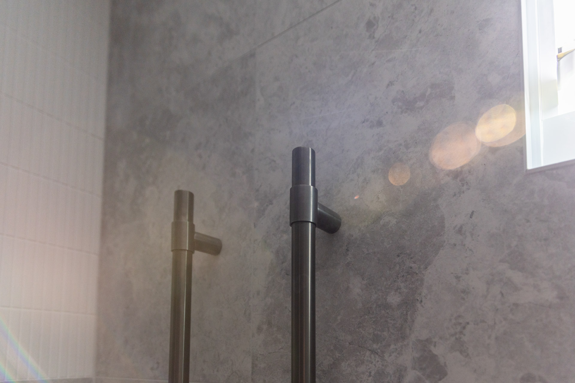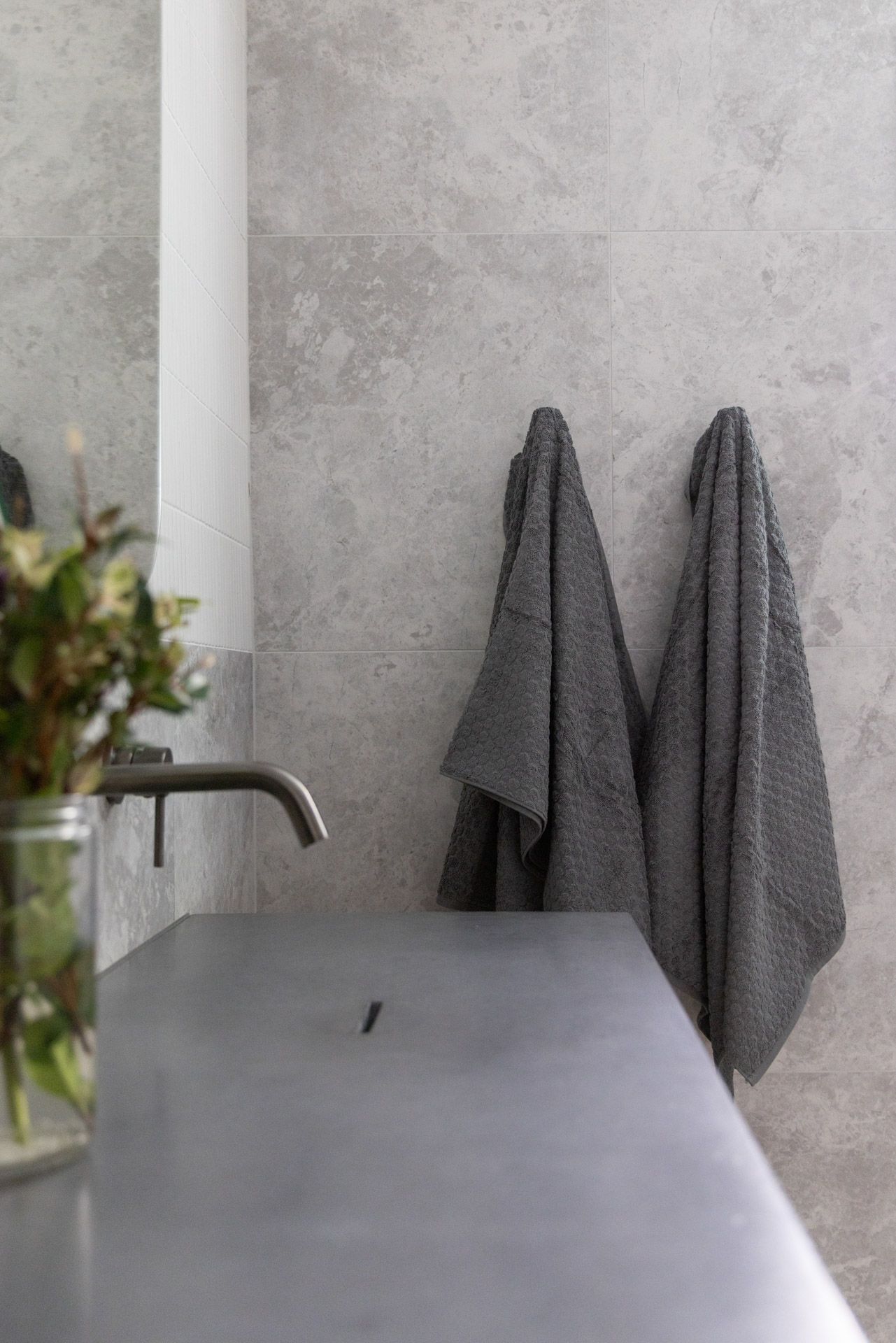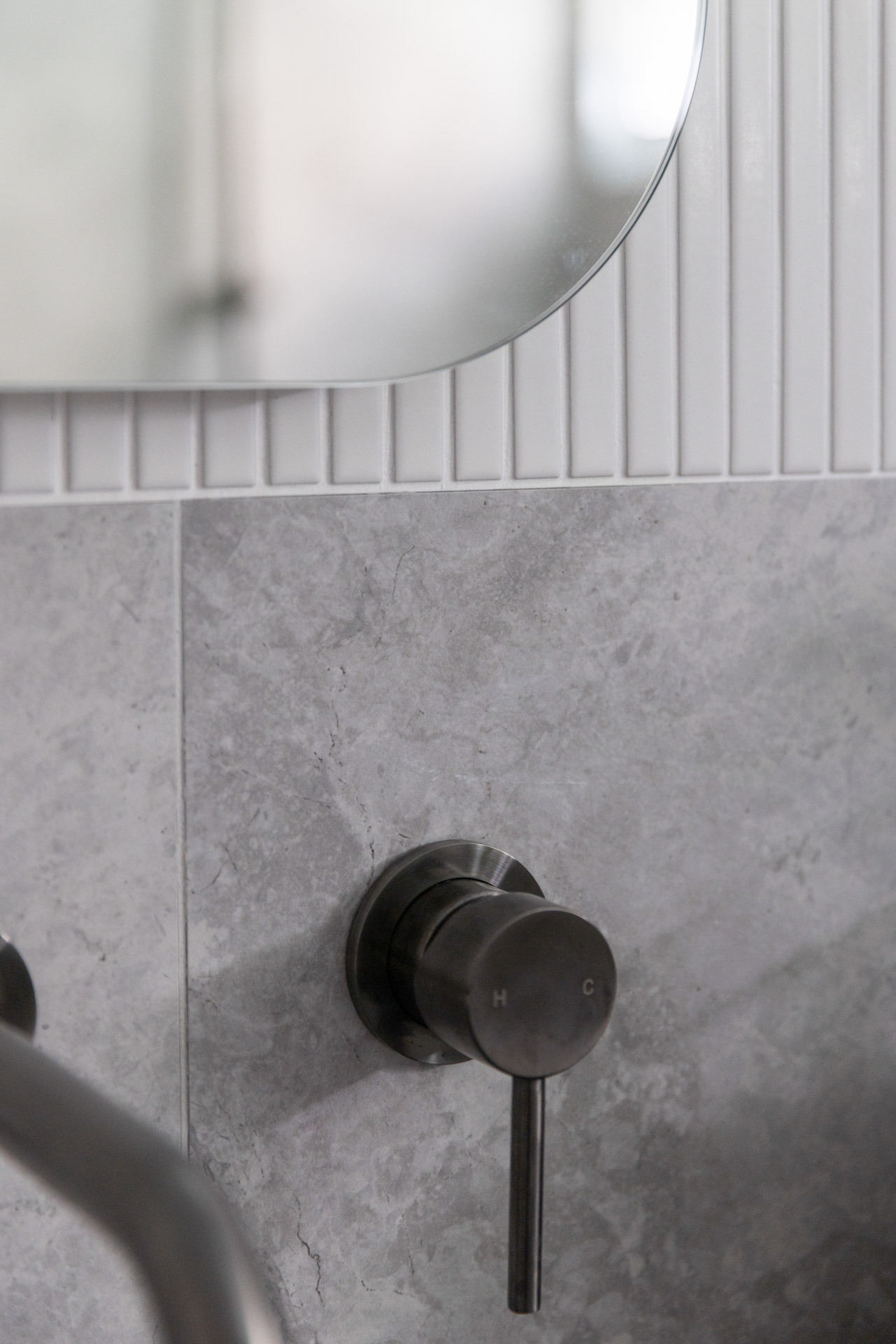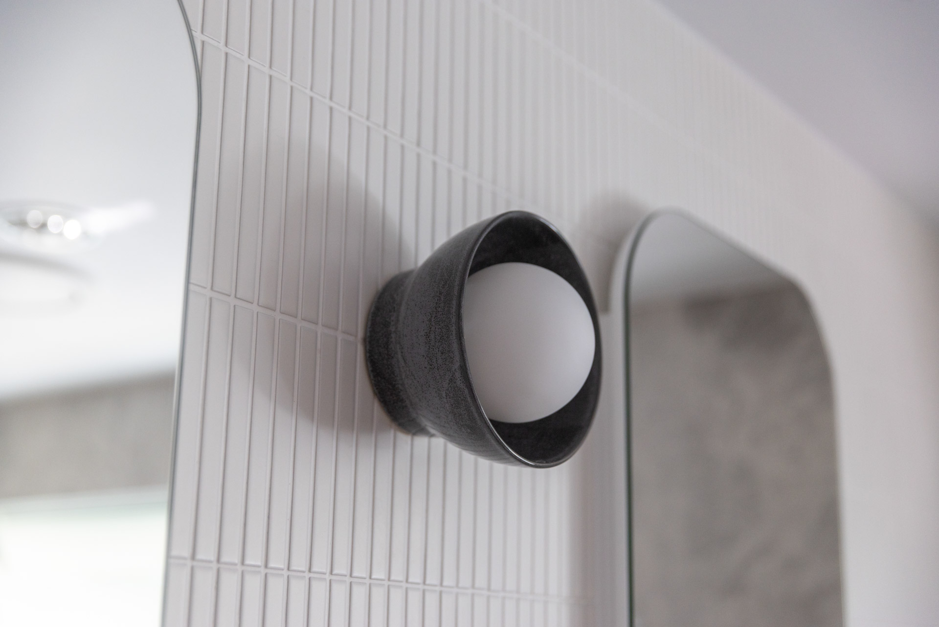 With a custom designed floating timber vanity, topped with a Mickey Mouse moulded concrete top, this space is a picture of modern elegance.